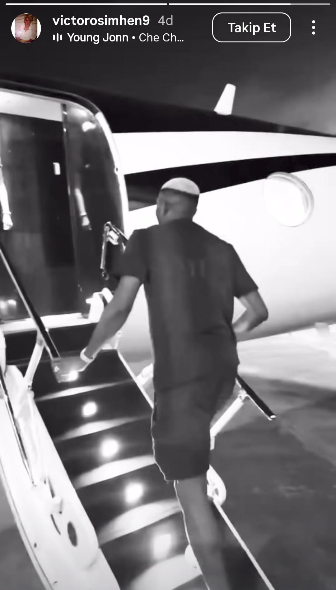 Bunun ardından Osimhen, sosyal medya hesabından uçağa binerken çekilmiş görüntüsünü paylaştı.