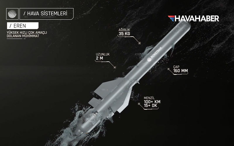 Murat İkinci, ikinci ürünün 100 kilometrenin üzerinde menzile sahip olan ve farklı platformlardan atılma özelliği bulunan, dolanan mühimmat EREN olduğunu kaydederek, “EREN mühimmatımız özellikle farklı tipteki hava hedeflerine ve yer hedeflerine angaje olabilen, çoklu özelliklere sahip bir dolanan mühimmat olarak hem insansız savaş araçlarımızdan hem de diğer platformlarımızdan fırlatılacak. EREN, özellikle bizim SİHA’larımızın savaş alanındaki gücüne güç katacak.” ifadelerini kullandı.