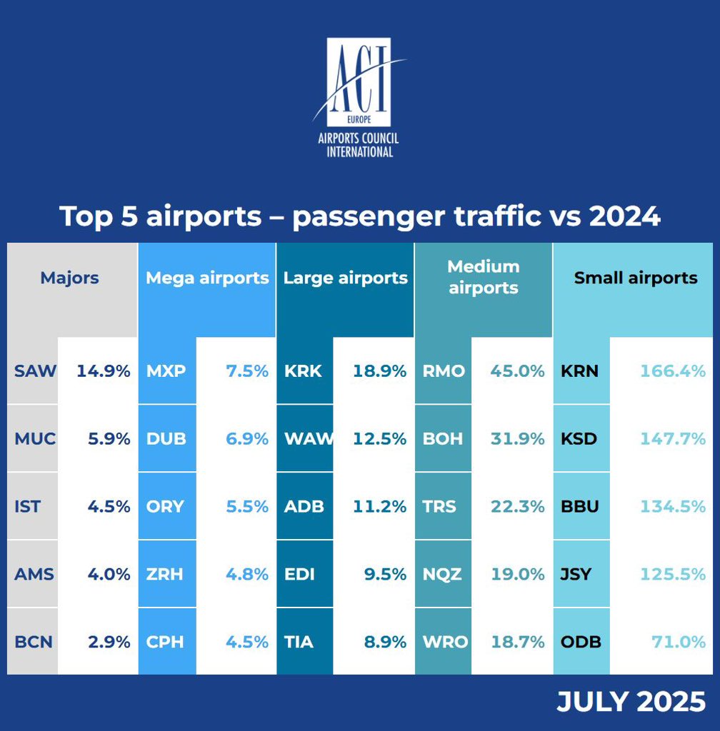 Sabiha Gökçen Havalimanı, Uluslararası Havalimanları Konseyi’nin (ACI) son raporuna göre “Dev Havalimanları” (Majors) kategorisinde liderliği ele geçirdi.